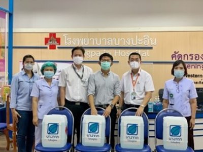 ร่วมเป็นส่วนหนึ่งในการบรรเทาสถานการณ์ และป้องกันการแพร่ระบาดของโรคติดต่อเชื้อไวรัส COVID-19 มอบแอลกอฮอล์สำหรับล้างมือฆ่าเชื้อโรคให้แก่วัด และตัวแทนชุมชนรอบบริษัท